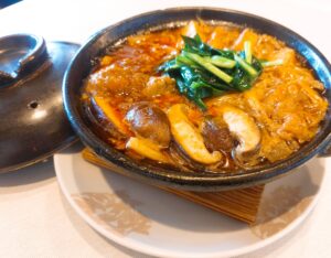 牡蠣、鶏肉、豆腐、白菜、春雨など具沢山でボリューム満点です。